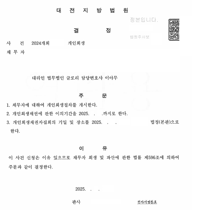 의뢰인과의 소통으로 꼼꼼하게 신청서를 작성하여 의로인도 만족하는 개시결정을 받을수 있었습니다.