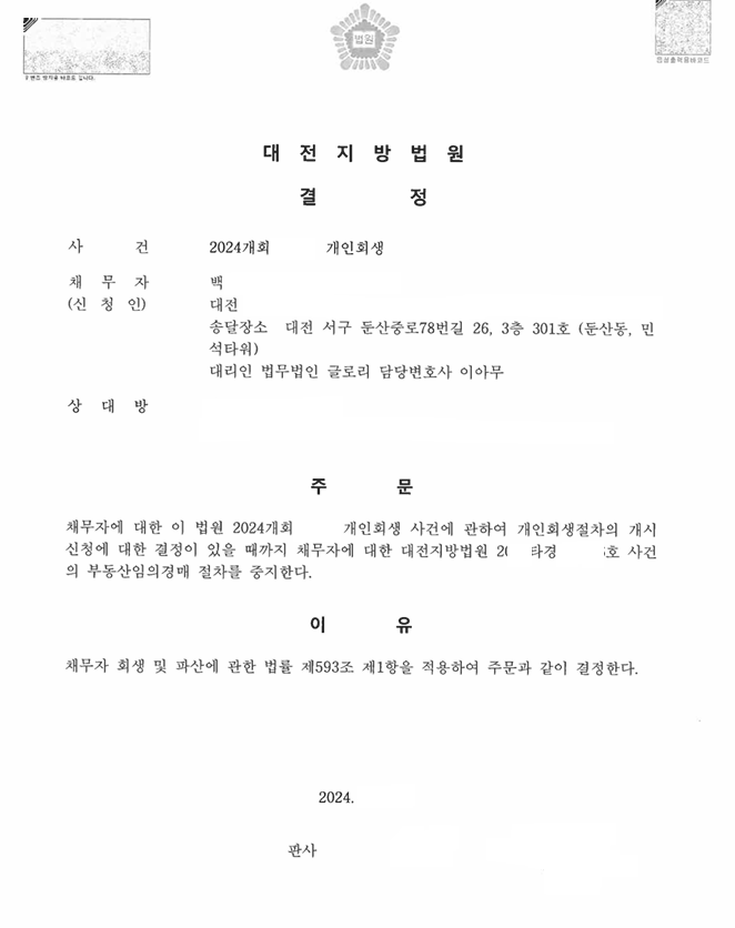 특히 재신청자, 임의경매 위험, 고액 채무, 고령 신청인이라는 복합적 어려움 속에서도 의뢰인에게 유리한 방향으로 이끌어낼 수 있었던 것은 저희의 경험과 역량이 뒷받침되었기 때문입니다.