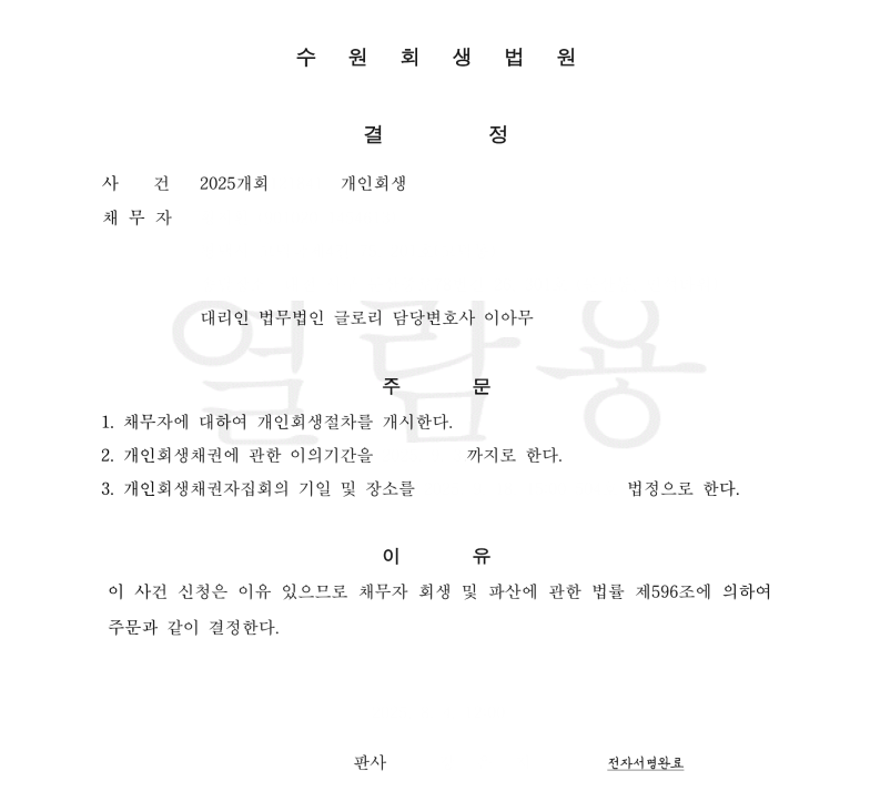 이러한 과정에서 전 배우자로부터 양육비 관련 소송까지 제기되면서, 채무자는 감당할 수 없는 채무와 생활고에 직면하게 되었습니다. 이에 채무자는 재기의 기회를 얻고자 개인회생을 신청 하게 되었습니다.