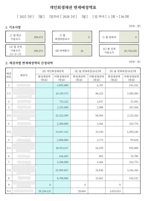 이자 상환만으로도 생계 유지가 어려운 상황에 이르러 개인회생 절차를 고민하게 되었습니다.