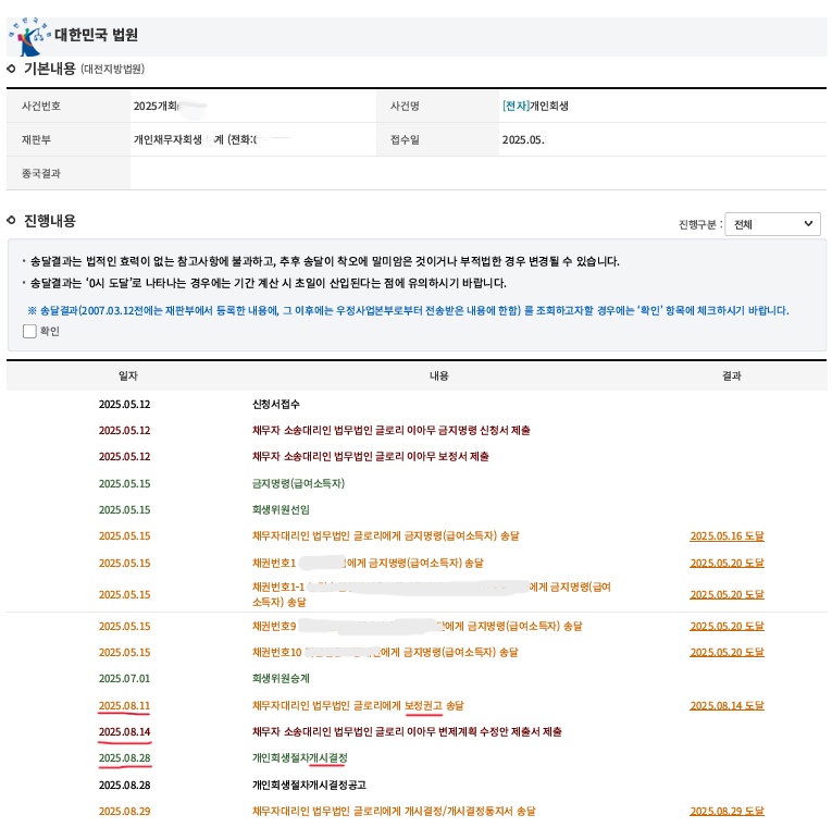 더불어 법원에서 내린 보정권고에 대해 소득 및 채무 사용처에 대해 객관적 자료 및 타당하고 상세한 소명을 통해 1회 보정만으로 개시결정이 내려졌으며, 보정권고일로부터 즉각적인 대처를 통해 곧바로 빠른 개시결정을 받을 수 있었습니다.