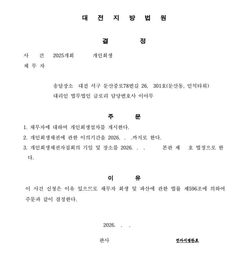 꾸준히 수익을 올려갔지만 배우자가 셋째를 임신하게 되어 더욱 빠듯해진 생계로 인해 채무가 증가하게 되었고, 더 이상 현재의 상황을 홀로 감당하기 어려워 개인회생에 대해 알아보던 중 저희 법무법인 글로리를 찾아주셨습니다.