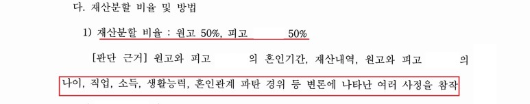 재산분할 비율 : 원고 50% 피고 50%