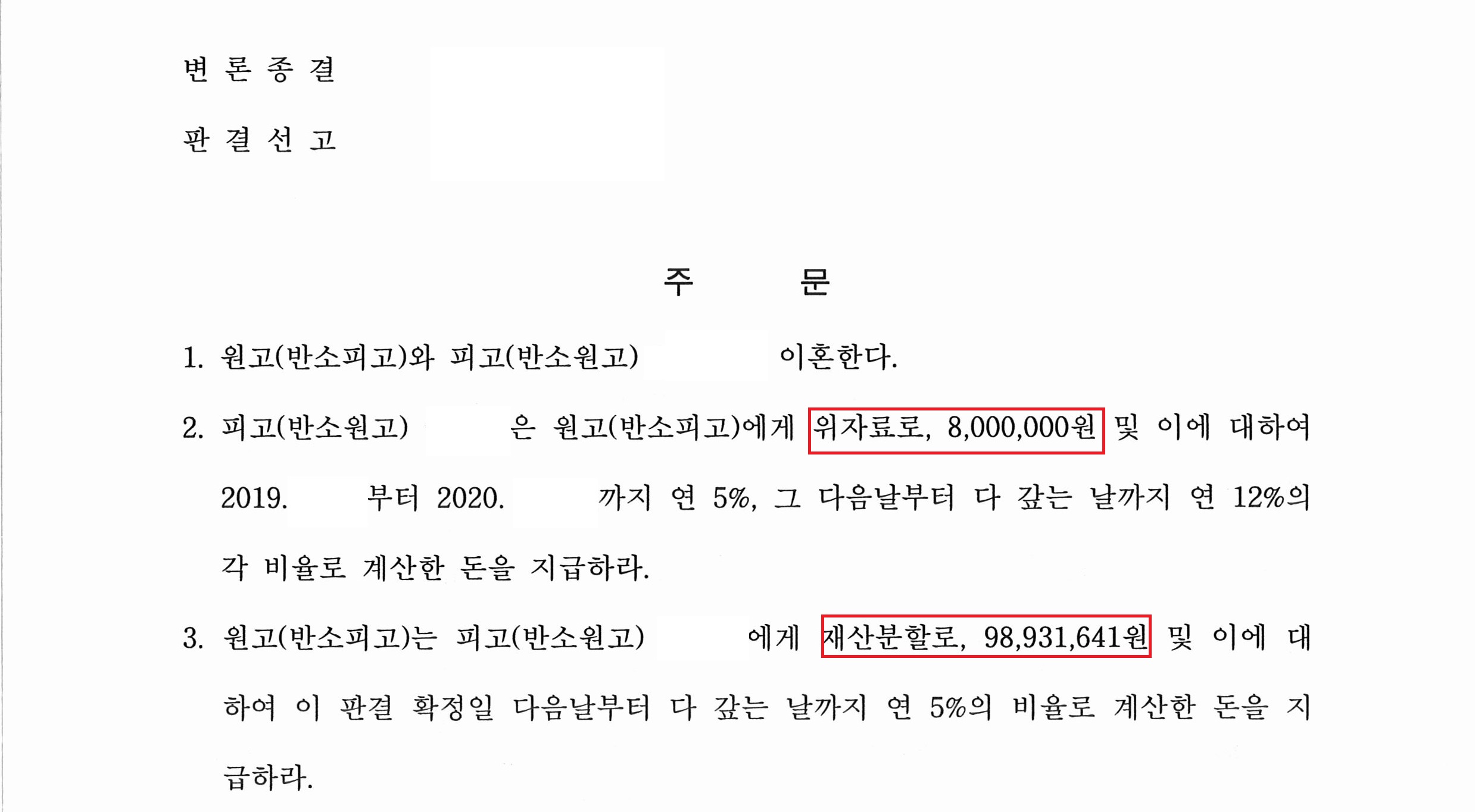위자료 및 재산분할 소송을 제기했습니다.