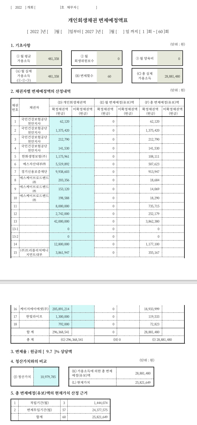 위 인정여하에 따라 월 변제금이 크게는 수백만원 차이가 나는 만큼 부양가족을 인정받는 것은