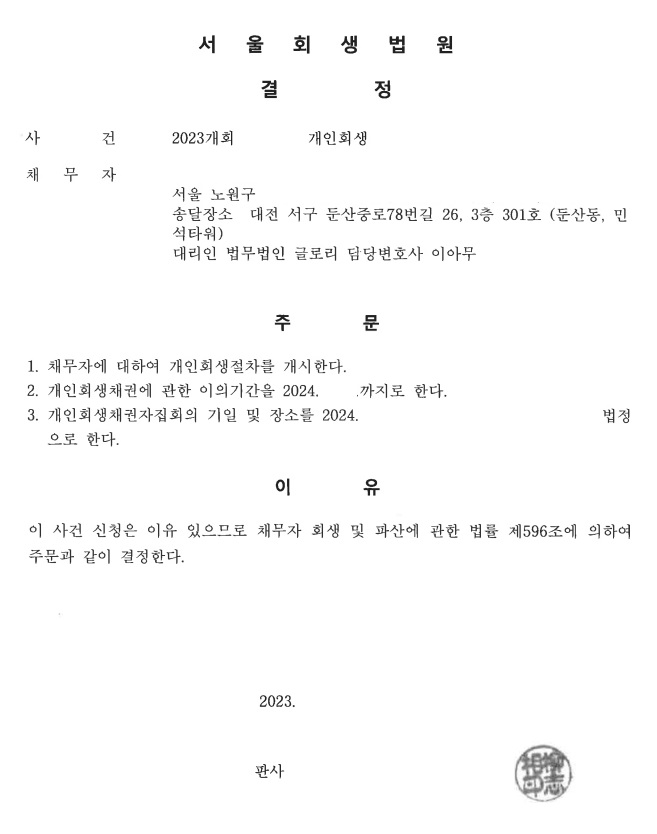 이번 사례에서도 마찬가지로 의뢰인이 만족할만한 개시결정을 받아드렸는데요,