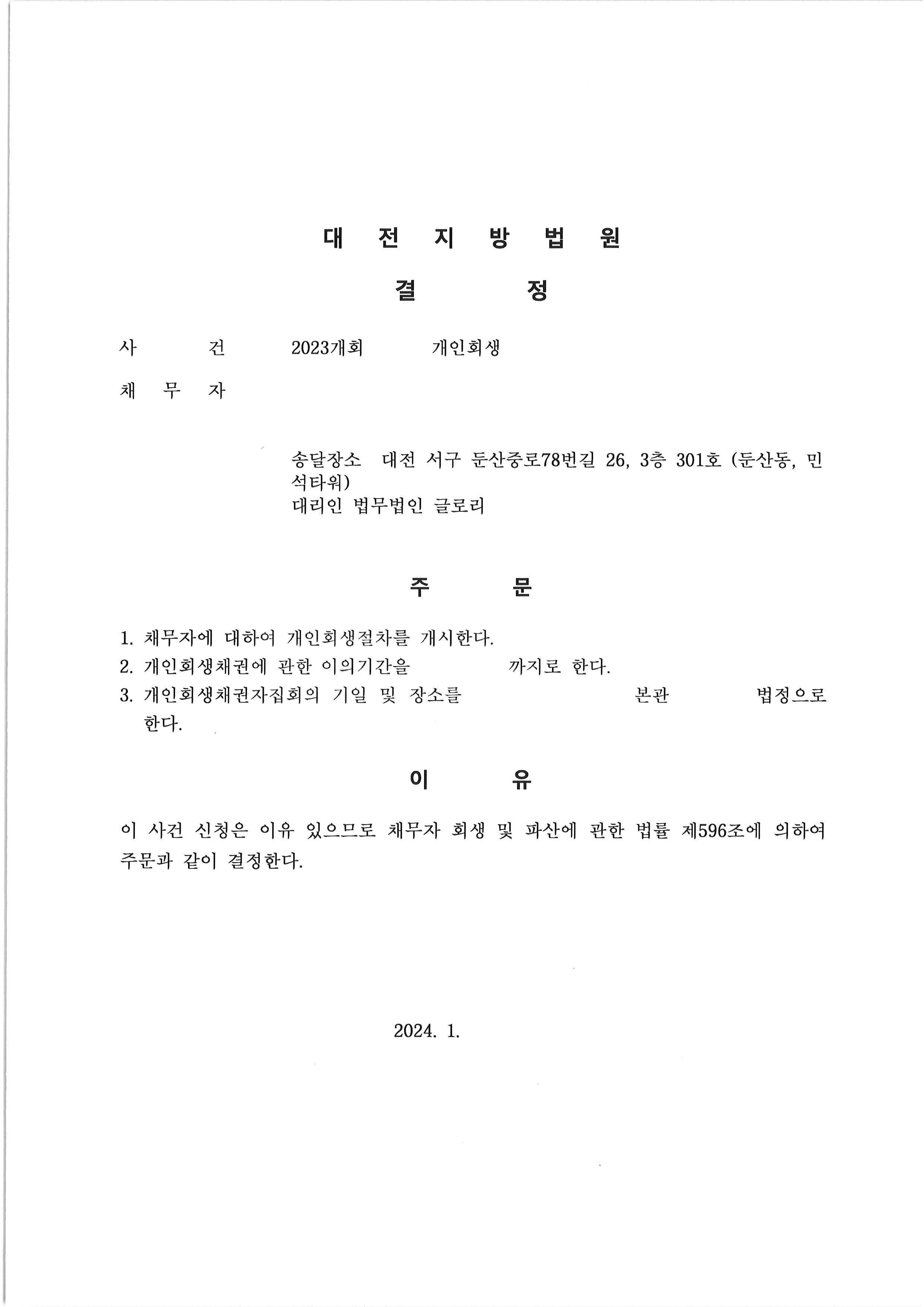 개시결정을 받을 수 있었습니다.