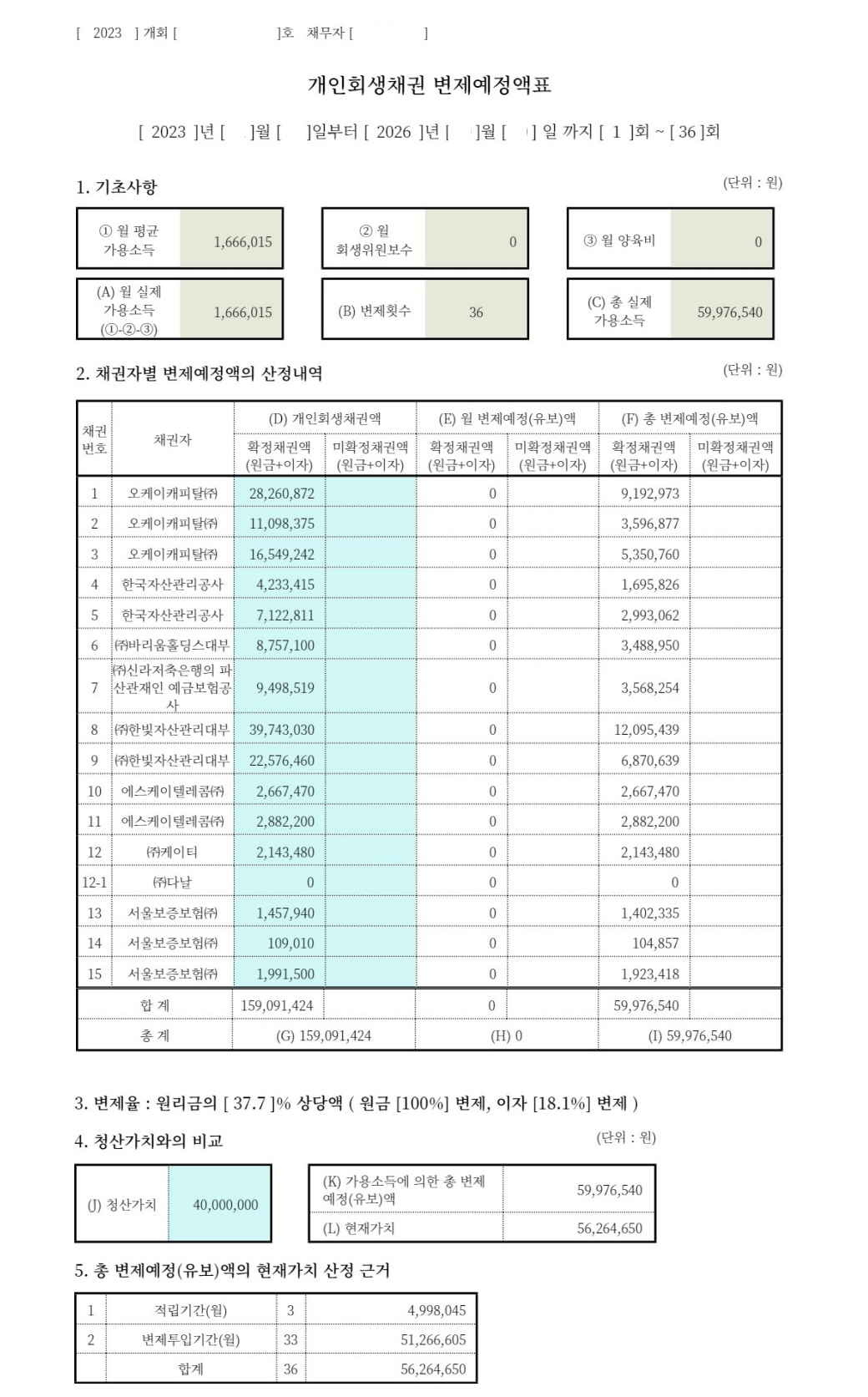 총 채무의 37.7%를 변제하며 원금의 62.3%를 탕감받는데 성공하였고,