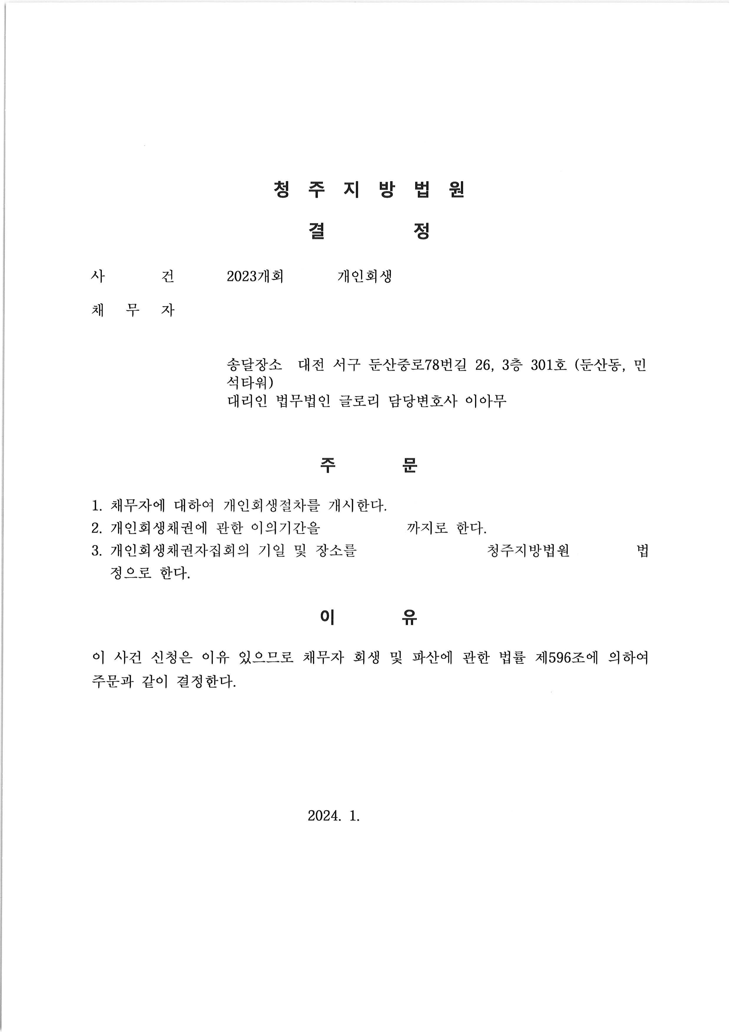 이러한 노력을 통해 개시결정을 받을 수 있었습니다.