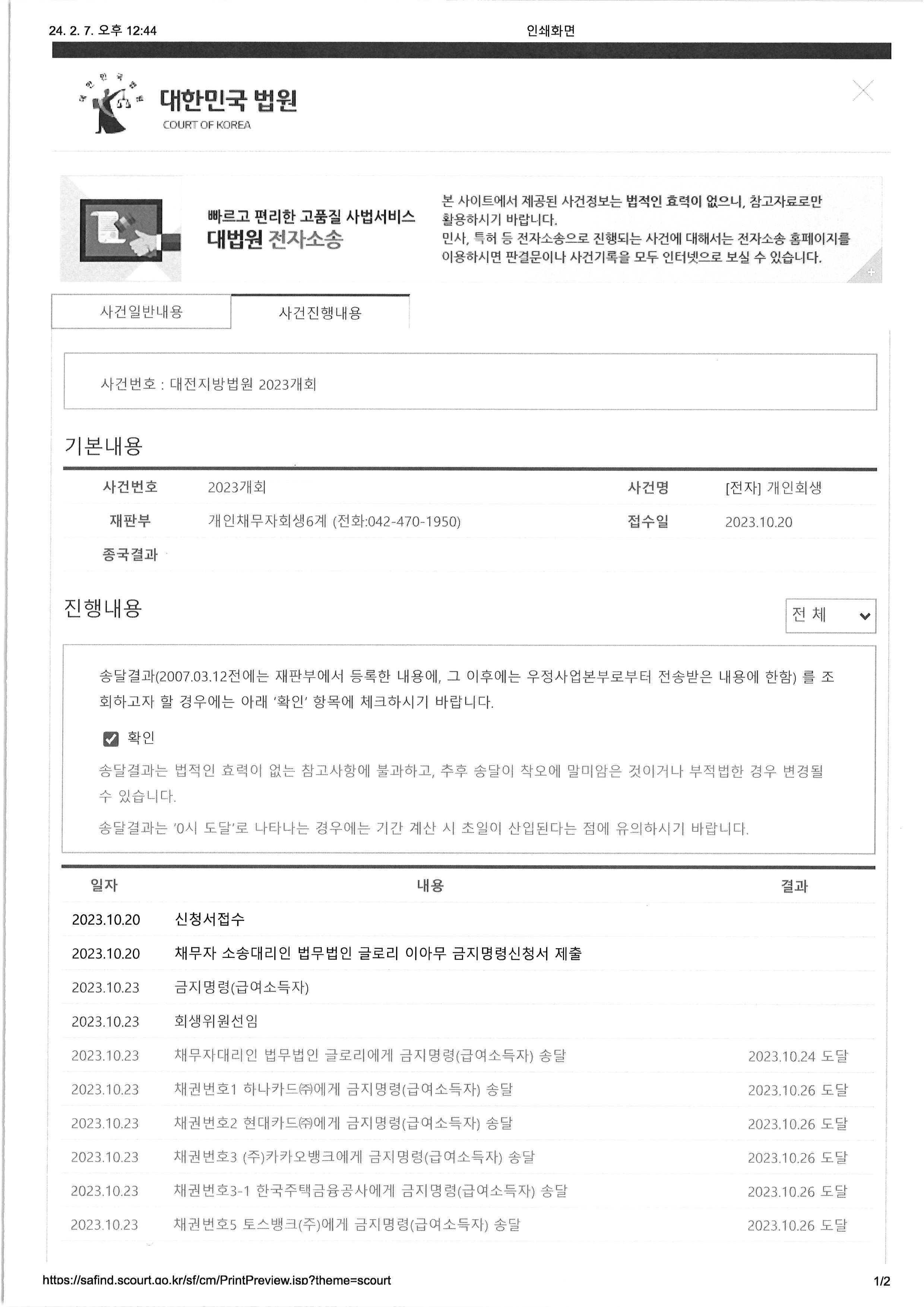 결국 여러 노력들이 인정되어 신청이후 1개월만에 개시결정을