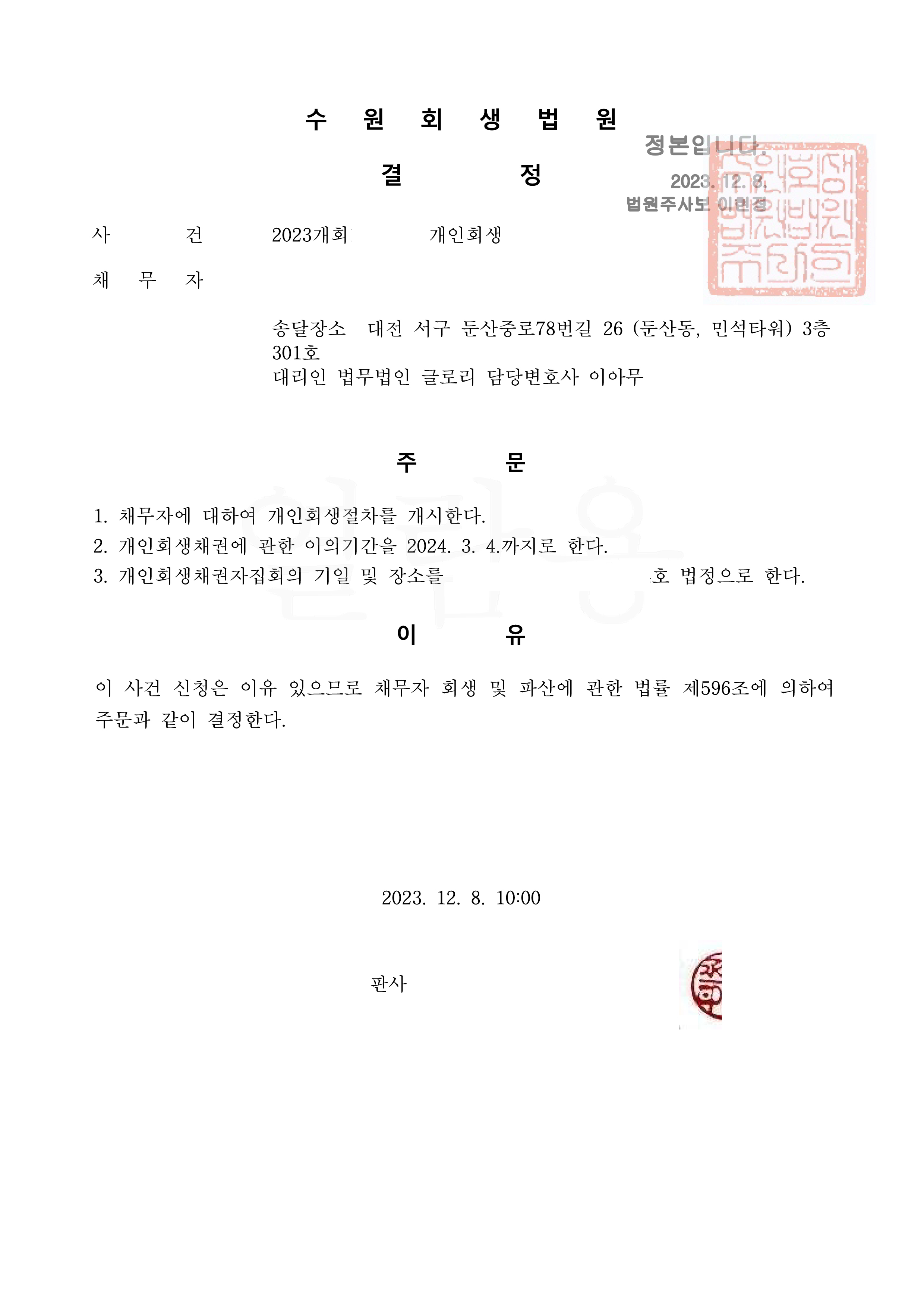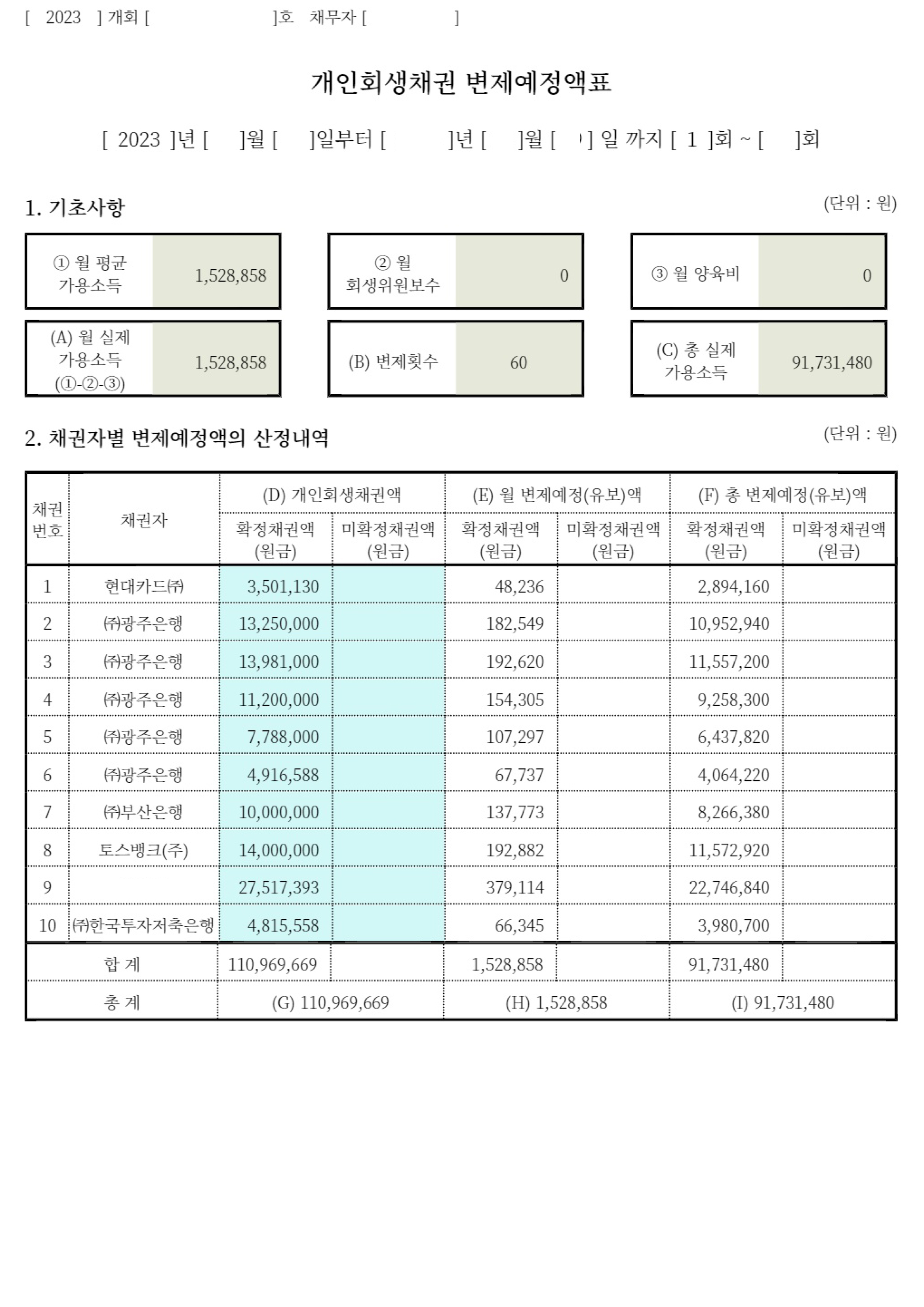 더 이상 따라잡기 어려워지게 되어 개인회생을 신청하셨습니다.