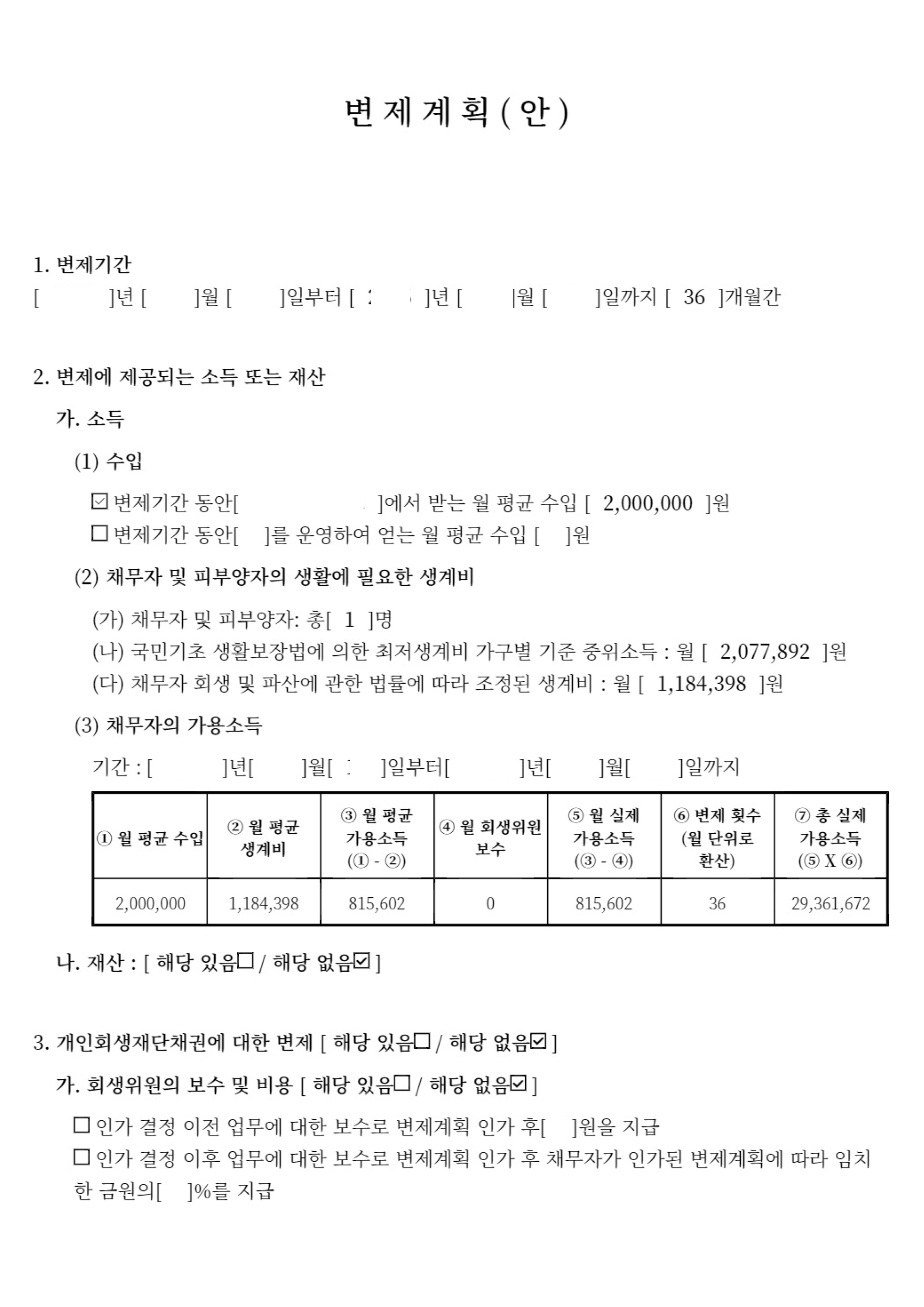 1억 2천만원 가량의 많은 채무를 도저히 갚을 능력이
