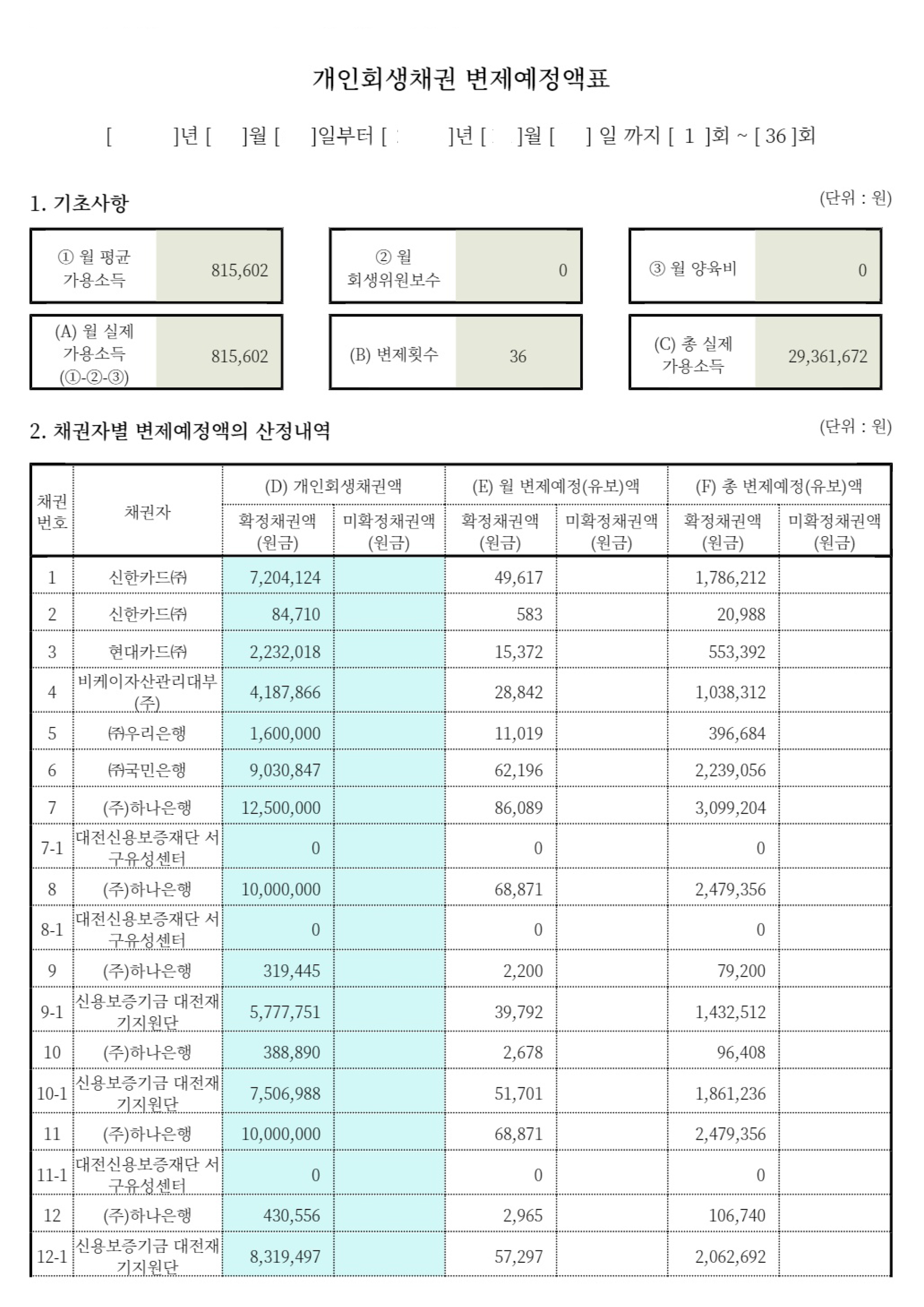 총 1억 2천만원 가량의 채무가 생기게 되었고,