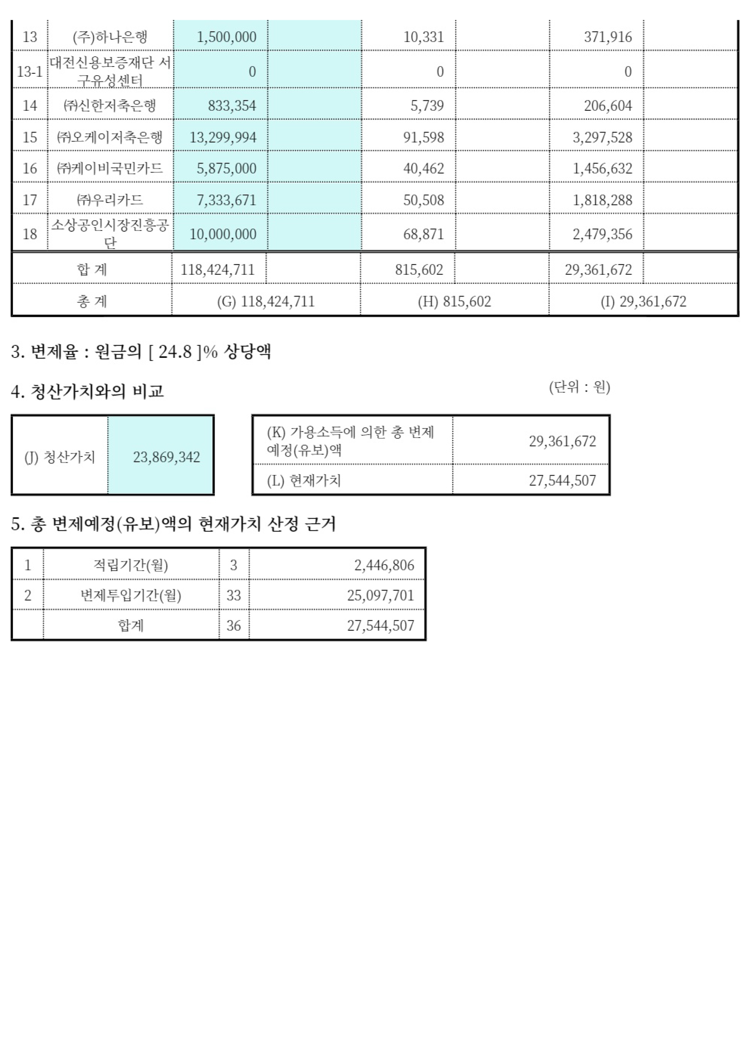 이에 탕감률이 원금의 75.2% 원금의 24.8%를 변제하는 것으로