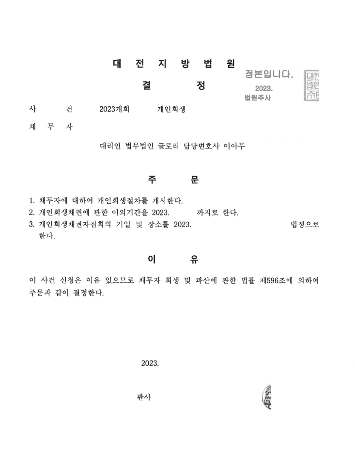 의뢰인께 최대한 유리한 조건으로 개인회생을 진행할 수 있도록 도와드리고 있습니다.