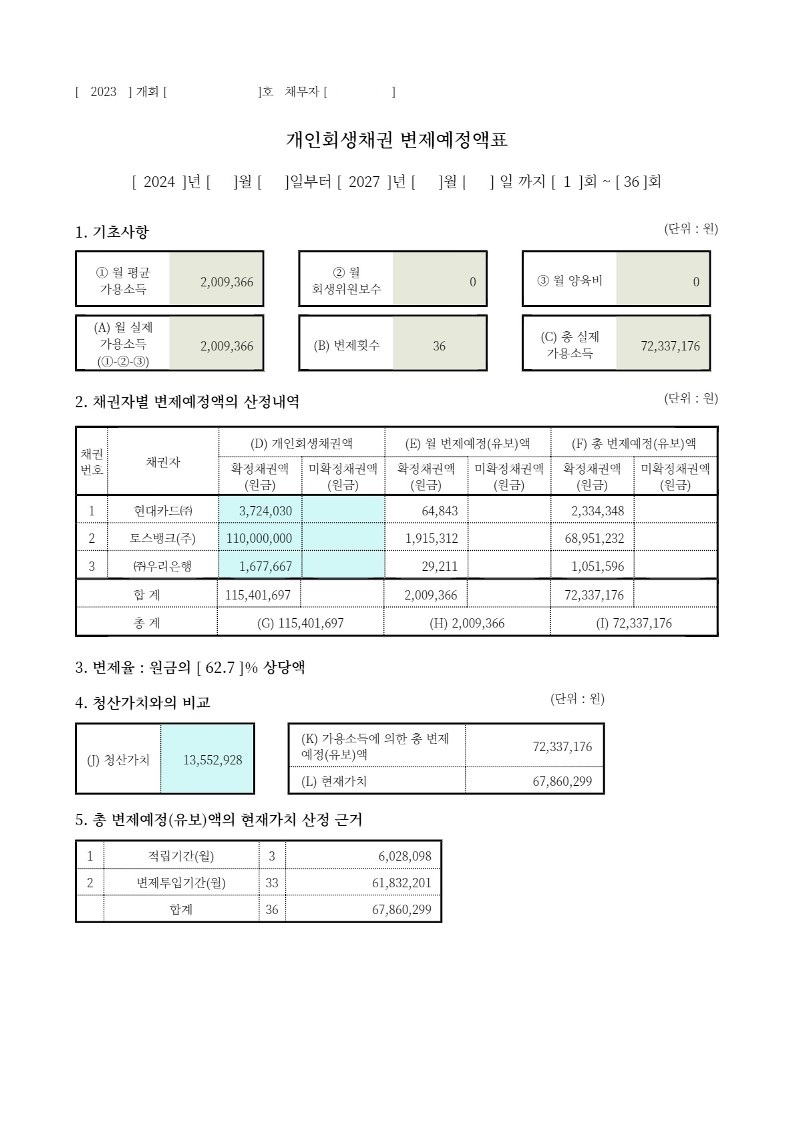 원치 않으시겠지만, 높은 변제율이 산정될 것이라는 점이 예상되었습니다.