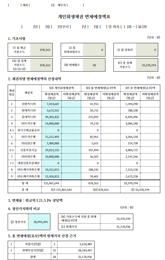 위와 같은 김정우(가명)님의 현제의 상황과 변제의 의지에 대하여 법원에 잘 어필함으로써, 부양가족 2명을 인정받았습니다.