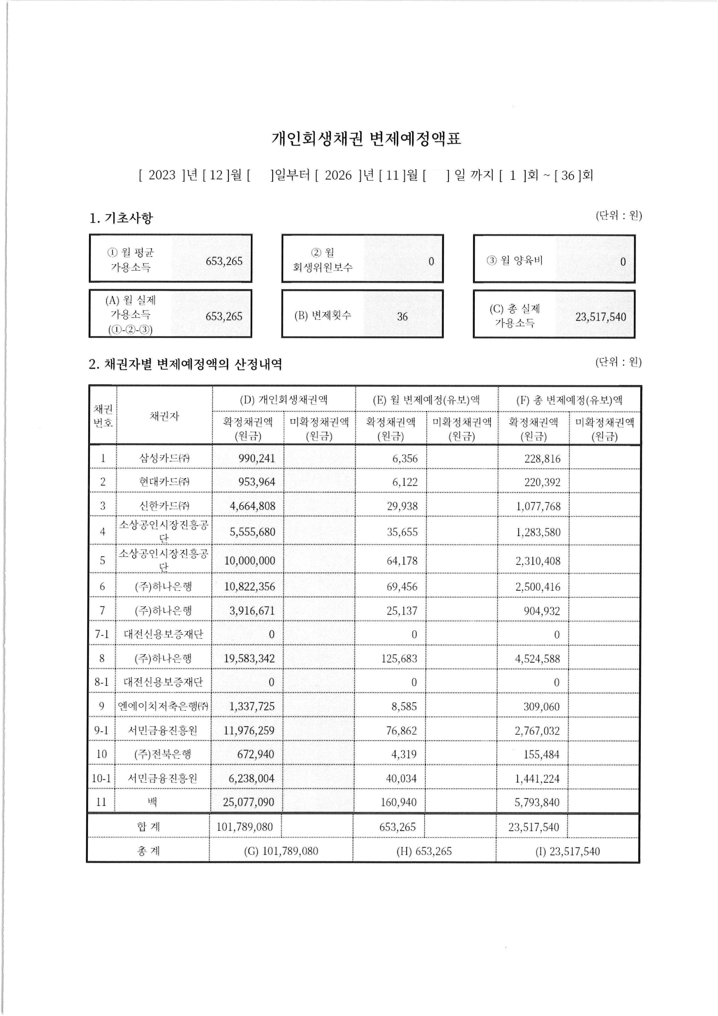 그로 인해 23.1%라는 낮은 변제계획안을 승인받을 수 있었습니다.