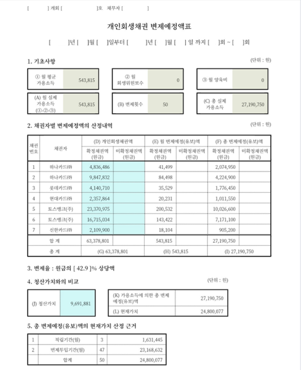 지급받고 있으나 실업급여로는 채무의 이자, 대금을 감당하기 힘들어 개인회생을 알아보고,