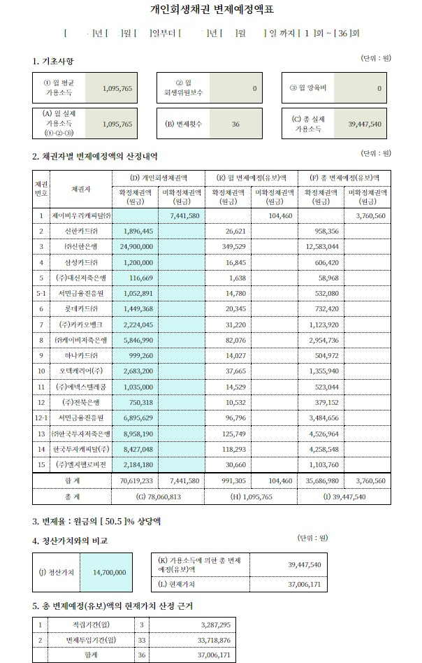 현재의 상황과 변제의 의지에 대하여 법원에 잘 어필함으로서 결국 짧은 보정을 거쳐 추가 생겨비 10만원 인정과 원금의 49.5%를 탕감받는데 성공하였습니다.