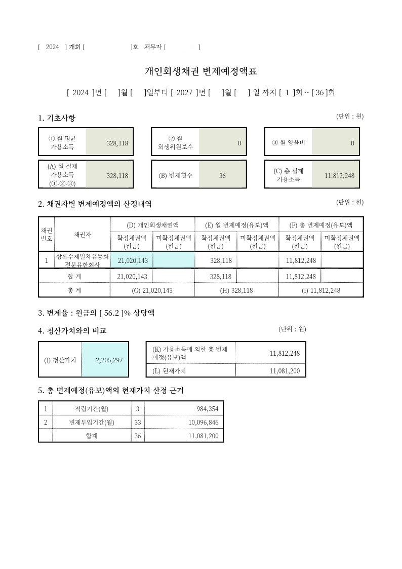 최선을 다해 도와드리고자 저희는 여러 방면으로 변제 계획을 구성하였습니다.