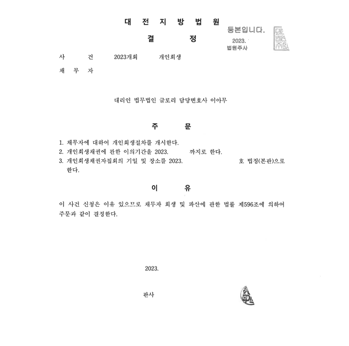 마지막으로 개인회생을 통해 모든 채무를 떨쳐내고자 저희 법무법인 글로리를 찾아주셨습니다.
