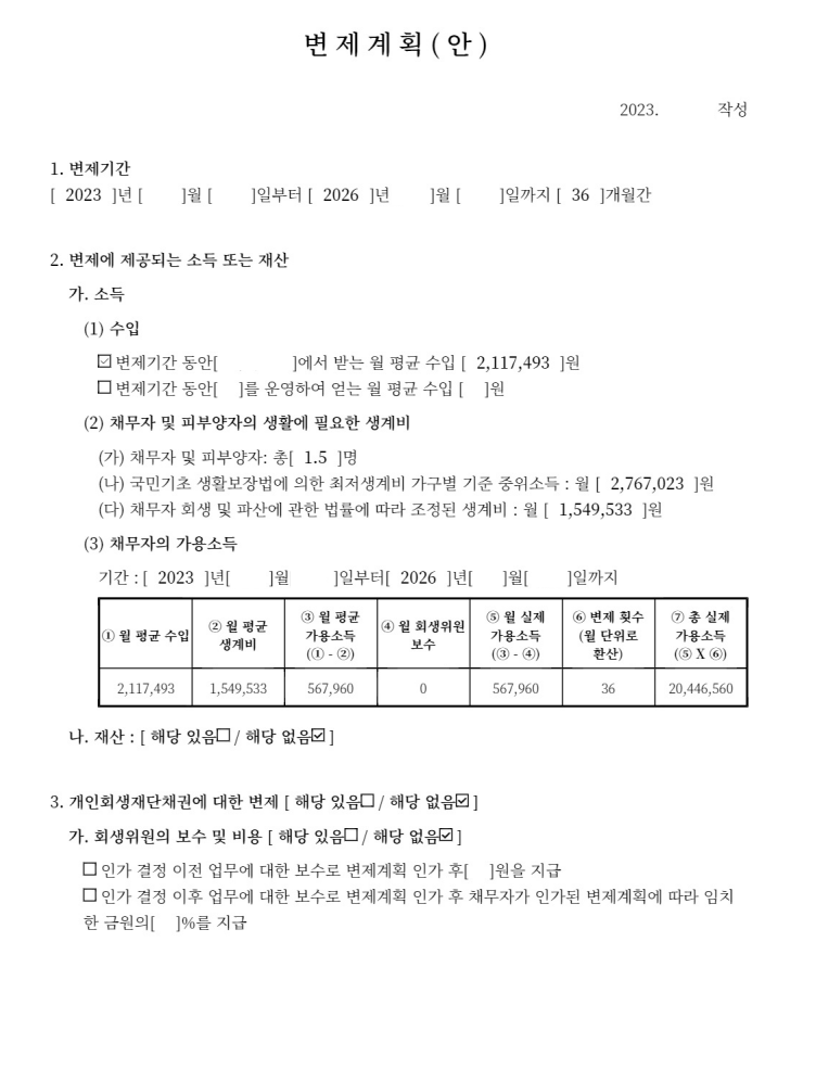 또한 3번째 개인회생 신청에 대하여 이전사건과의 비교도표, 폐지사유 등을 꼼꼼하게 진술하였으며,