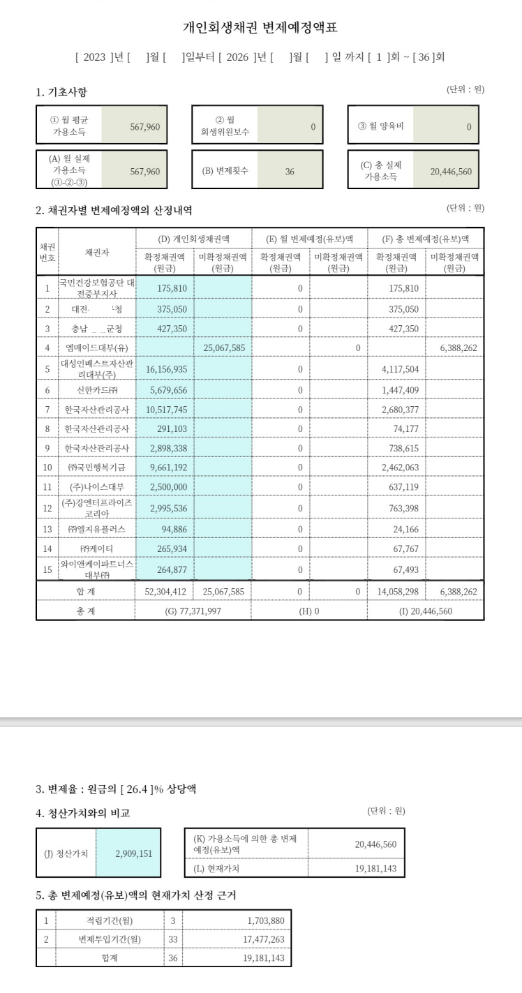 압류와 추심이 시작되고, 기본적인 생활이 무너지자 개인회생을 신청하게 되었지만,