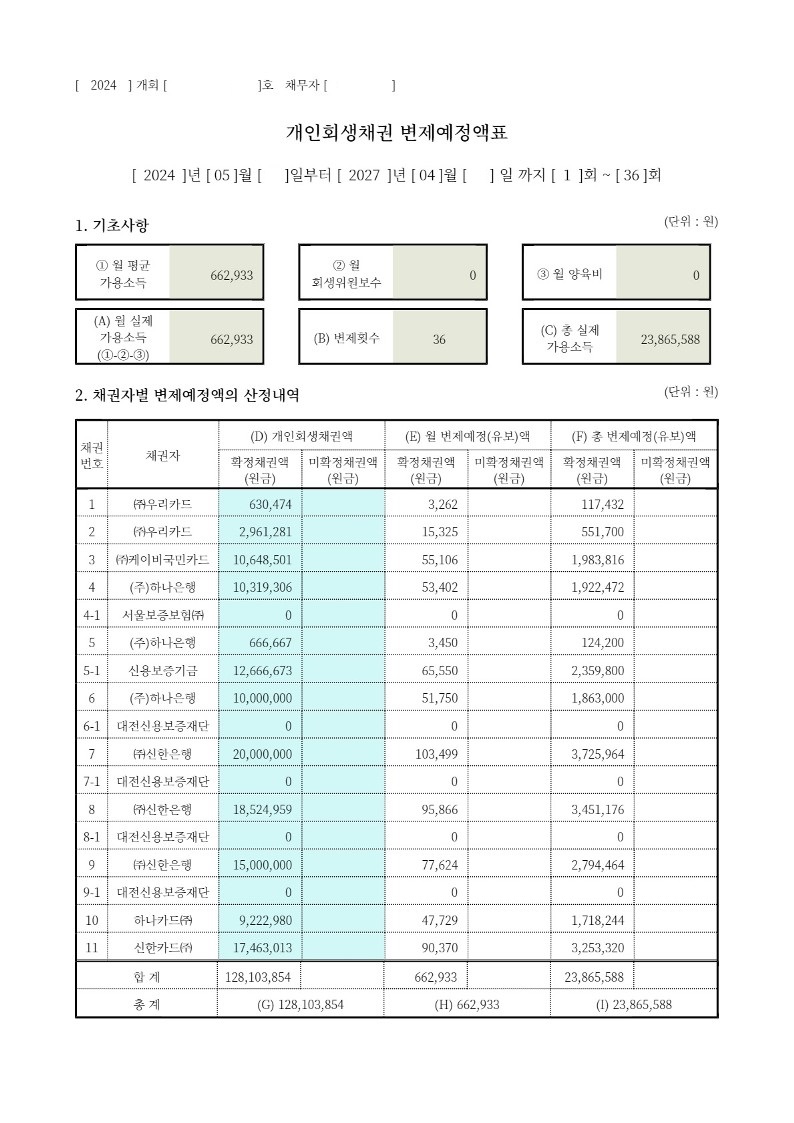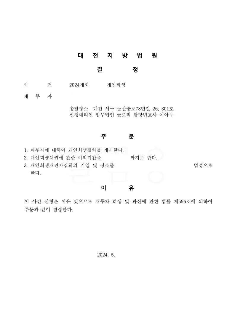 변제계획안을 승인 받을 수 있었습니다.