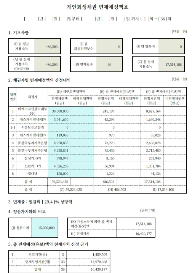 (도박, 게임, 주식 등으로 생긴 채무의 경우 법원에서는 불성실한 채무로 보기 때문에 전액을 청산가치로 반영하라는 입장을 취합니다.)