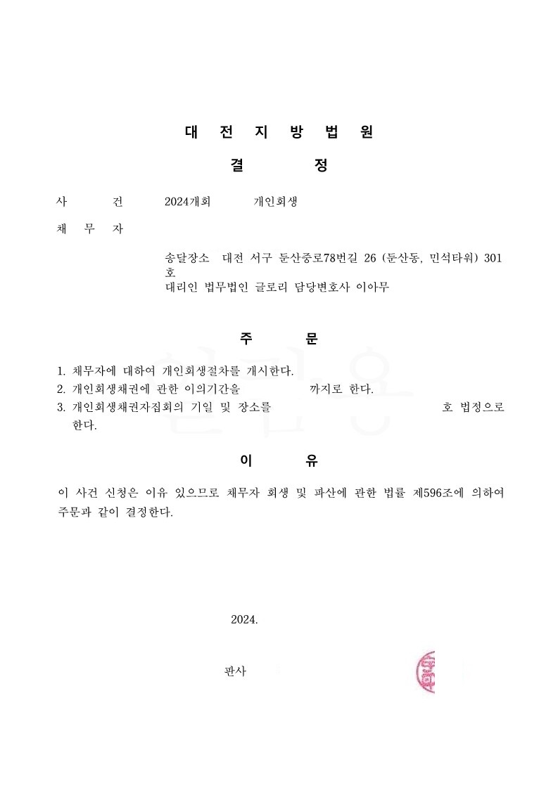 그리고 빠른 개시결정이 나와 고객님의 마음을 한결 편하게 해드리게 되어 저희 법무법인 글로리도 기뻤던 기억이 있습니다.