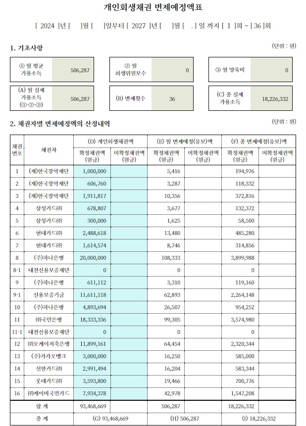 점점 불어나는 이자에 더 이상 견딜 수 없어 개인회생을 신청하게 되었습니다.
