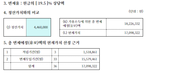 1. 영업지의 폐업으로 인한 비품,재고품의 금액이 청산가치가 반영되어야 하지만 신청인과의 원활한 소통으로