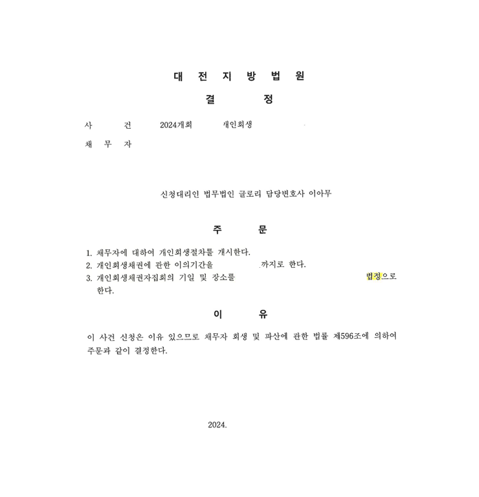 영모씨는 더 이상의 보정 없이 빠르게 개시 결정까지 받아낼 수 있었습니다.
