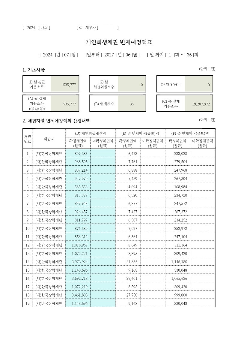 개인회생을 신청하게 되셨습니다.