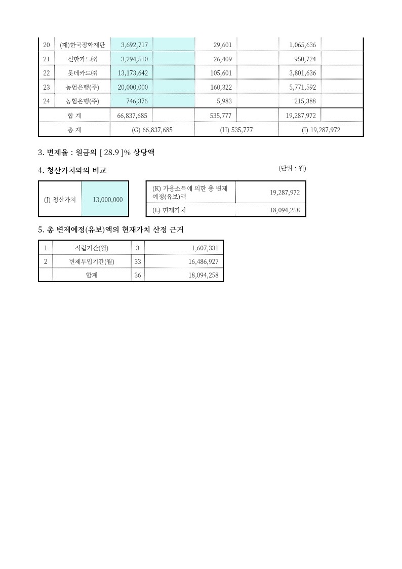 총변제율 28.9%의 낮은 변제계획안을