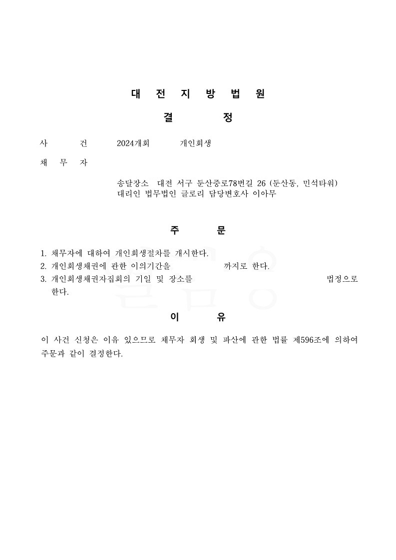 고객님의 빠른 경제적 회복을 위해 저희 글로리는 최선을 다하여 사건을