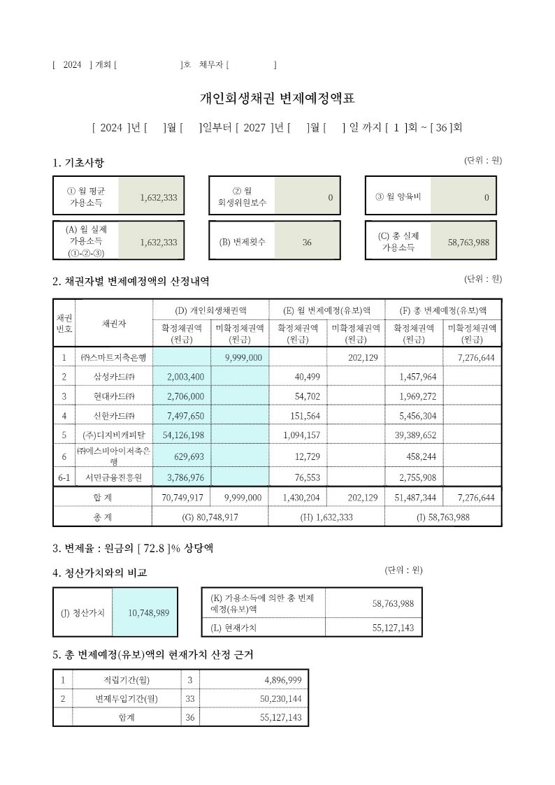 도박이 채무 원인임에도 27.2%의 탕감을 받은 변제계획안을 받을수 있었습니다.