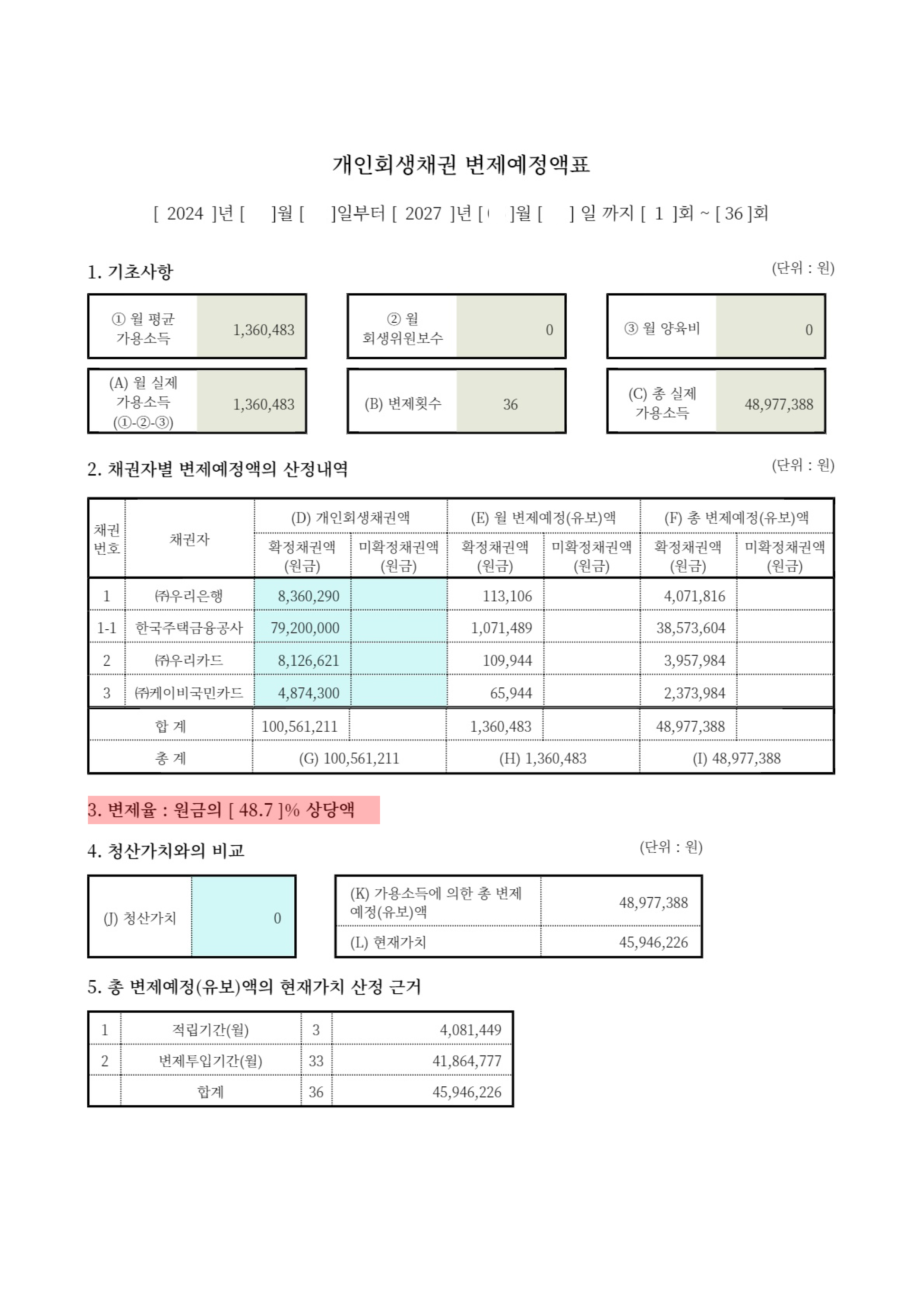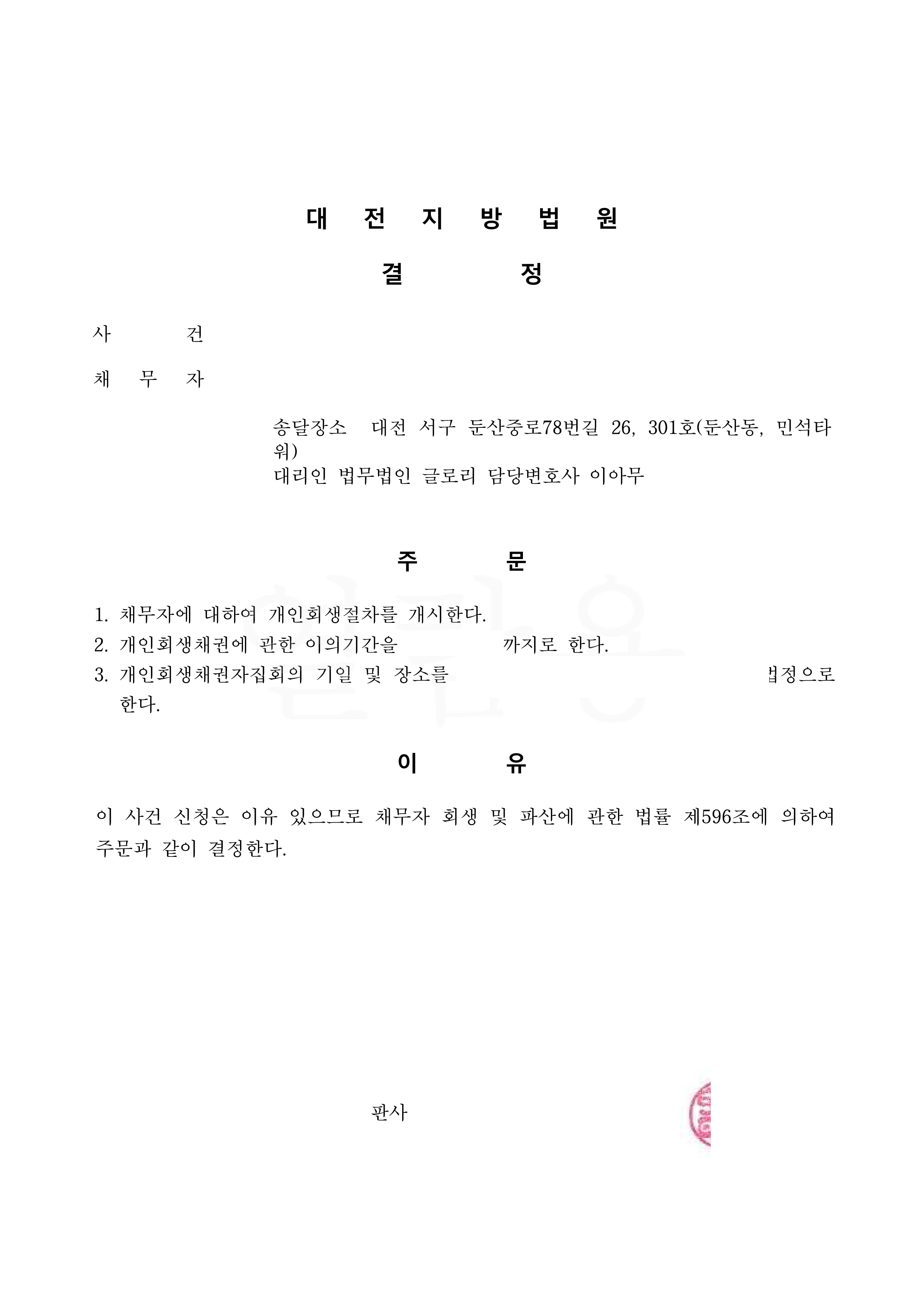 추가생계비 40만원을 인정받는 좋은 조건으로 개시 결정을 받아드렸습니다.