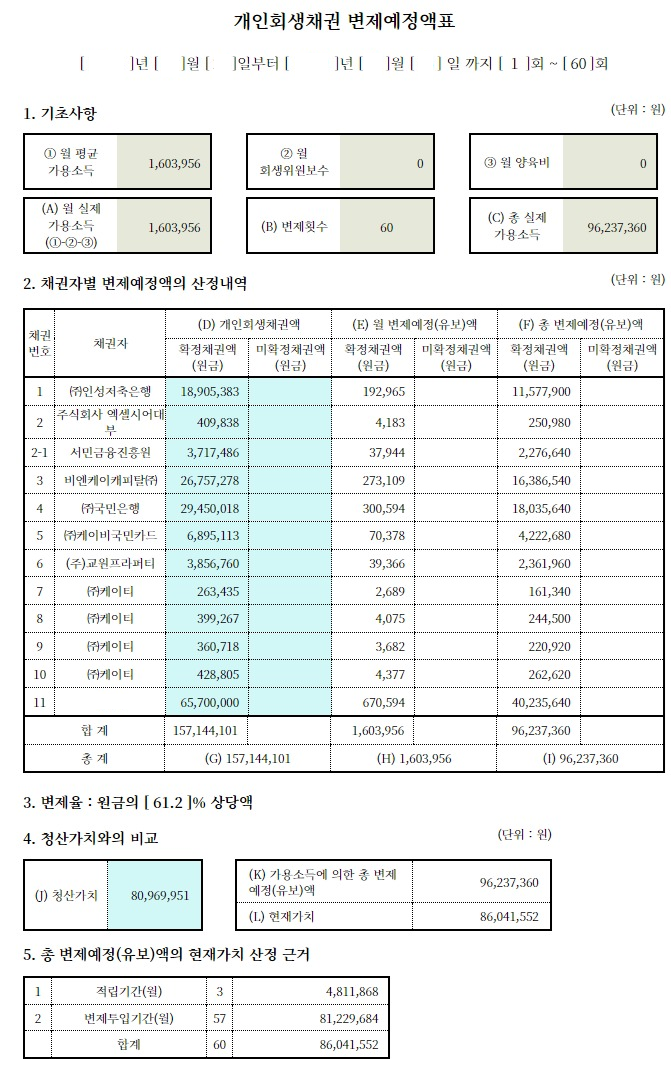 저희 법무법인 글로리는 이성은(가명)님의 힘든 상황을 고려하고, 다시금 아픔이 반복되지 않도록 또한, 최소한 변제금으로 변제를 도와드릴 수 있도록 노력하였습니다. 그러나, 이성은(가명)님의 채무발생원인은 주식, 비트코인 등의 지출도 포함되어있었습니다. (도박, 주식, 코인 등으로 생긴채무의 경우 법원에서는 불성실한 채무로 보기 때문에 청산가치로 반영하라는 입장을 취합니다.) 또한, 이성은(가명)님은 청산가치(재산)가 약 8,000만원 정도 있었습니다. 보통 본인이 소유한 재산보다 더 많은 금액을 변제해야 하므로 개인회생에 있어 어려움을 겪습니다. 하지만 저희 법무법인 글로리는 다양한 사례를 다뤄봤던 전문가의 자세한 상담과 노하우들로 고객님도 만족하는 결과의 서류를 작성하였고, 부채증명발급사를 통하여 서류들 역시 빠르게 준비하여 신청하였으며, 1일이내 금지명령도 받았습니다. 그리고 이성은(가명)님의 통장내역 주식, 코인 등 사용내역이 가득하여, 30만원이상 입출금내역을 소명하는 과정에서 어려움이 있었지만, 이익과 손실금액을 정리하여, 최종 이익금이 많지 않는 점을 어필하였고, 또한 생활비로 사용된 금원임을 소명하였습니다. 그리고 현재의 상황과 변제의 의지에 대하여 법원에 잘 어필함으로서 결국 결국 총 채무의 65.2%를 변제하며, 원금의 38.8%를 탕감받는데 성공하였습니다. 고객님께서도 매우 만족하는 좋은 결과로 개시결정을 받을 수 있었습니다. 청산가치(재산)가 있거나, 주식, 비트코인 등으로 인한 채무가 부담스러워 개인회생을 고민하고 계신다면 저희 법무법인 글로리를 찾아보시기를 추천드립니다. 19년 이상의 경력을 보유한 사무장님과 실무진들이 있는 저희 법무법인 글로리는 고객님들이 만족하는 결과를 얻으실 수 있도록 최선을 다해 노력하고 있습니다.