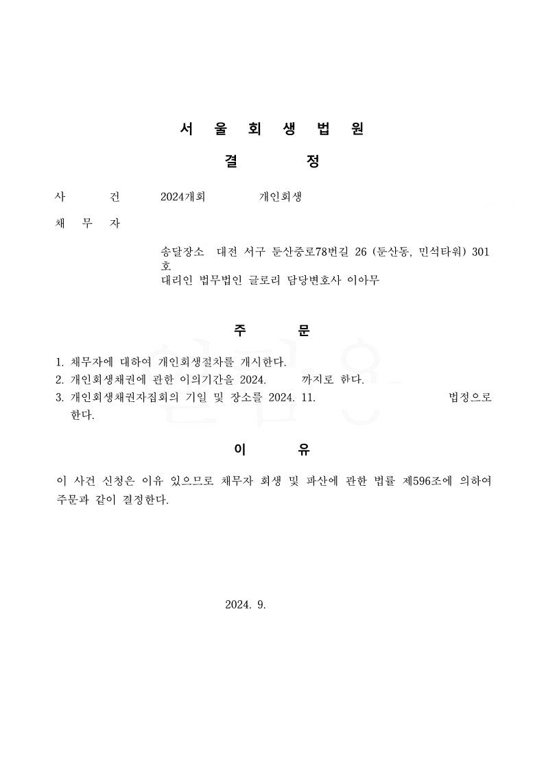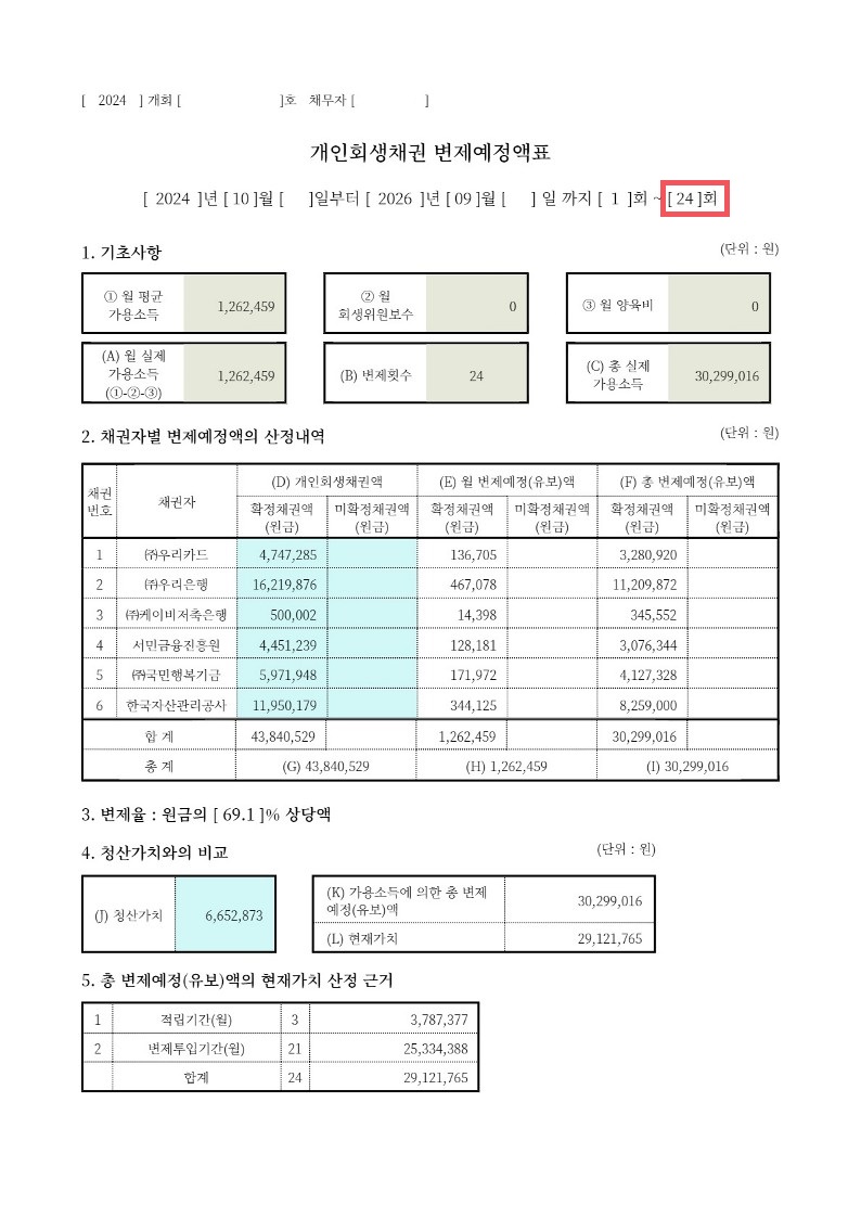 여러 조건을 만족하여 서울 회생법원에 24개월 변제계획안을 제출하게 되었고