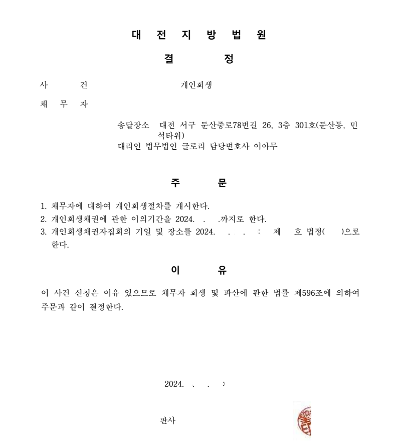 2. 신청서 제출 시 많은 자료를 제출하여 간단한 보정으로 빠르게 개시결정을 받을 수 있었습니다.