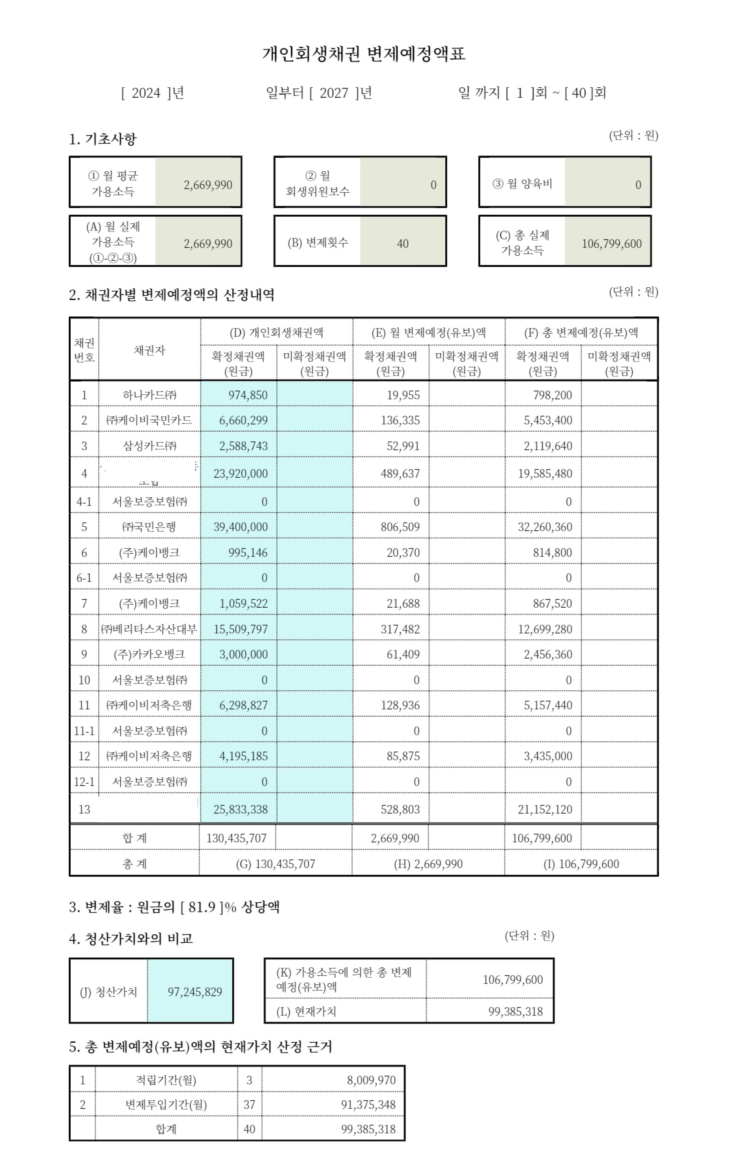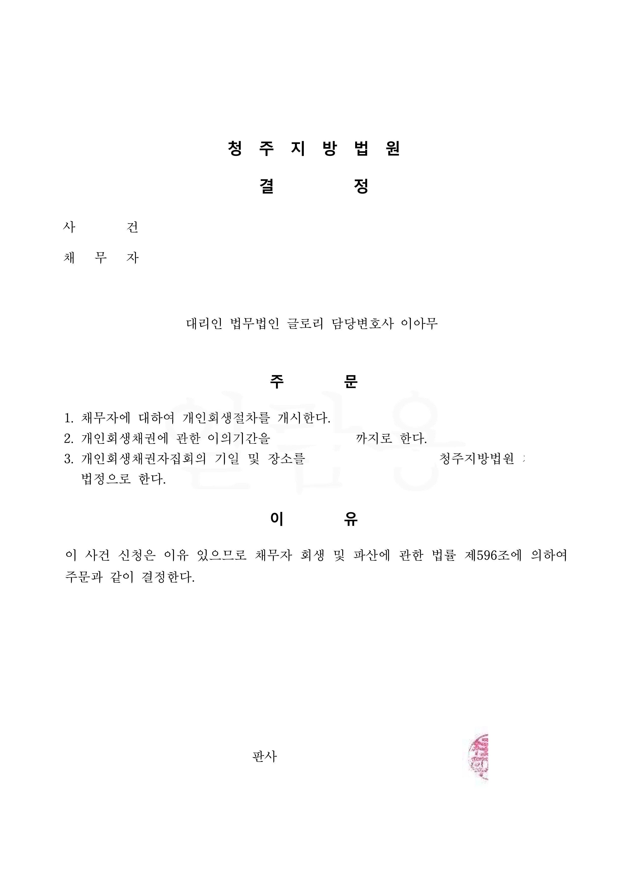 변제율 81% 결과로 개시 결정을 받아드릴 수 있었습니다.