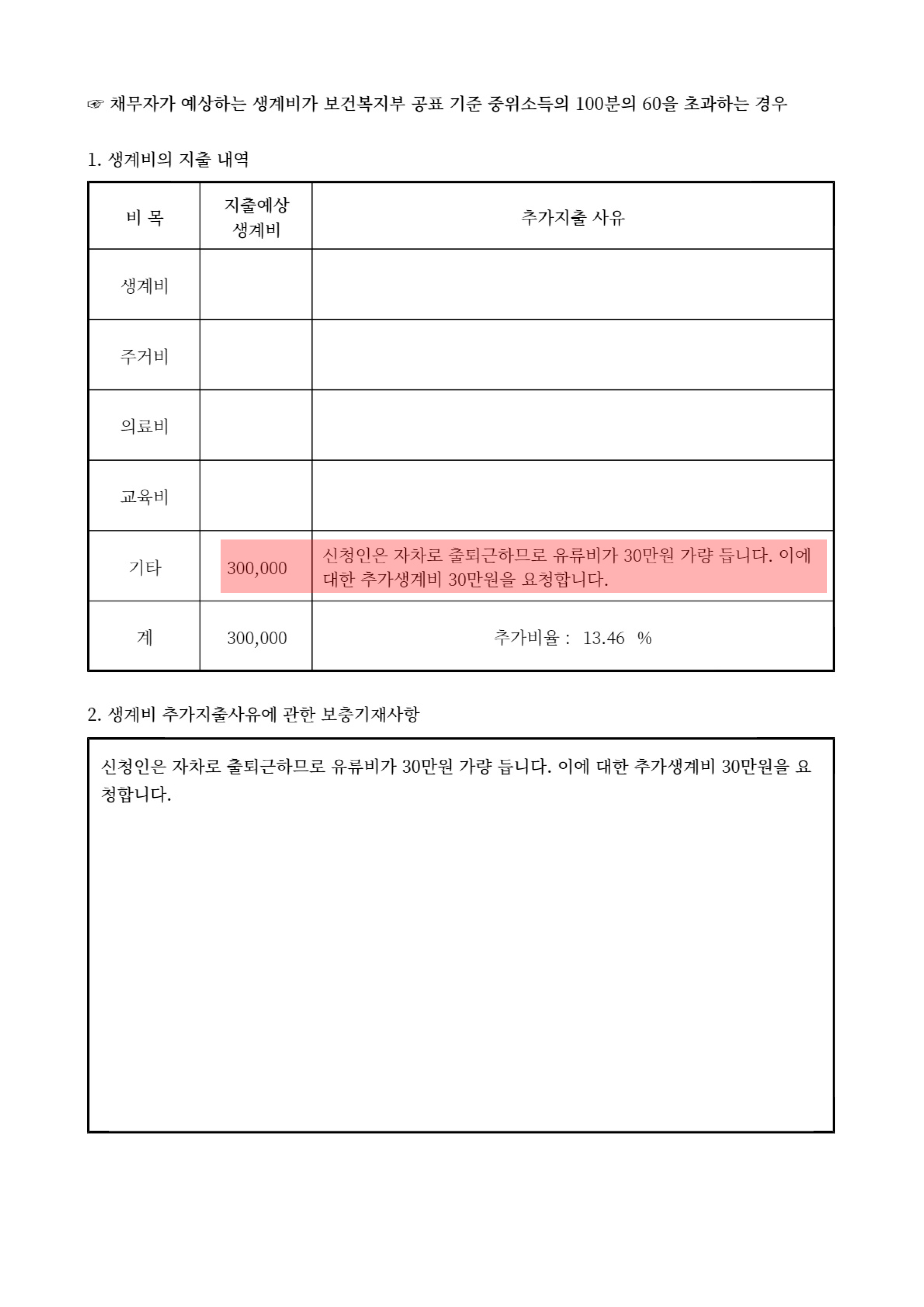 법원으로부터 저희의 요청이 받아들여져 추가 생계비 30만 원 인정,