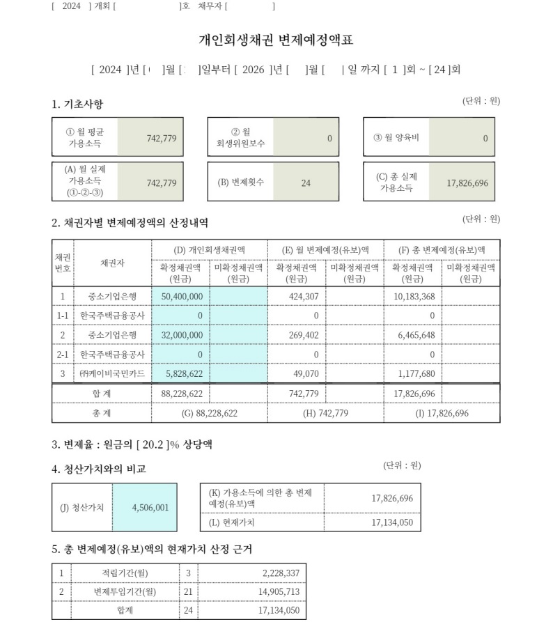 안녕하세요 저희 법무법인 글로리는 신청인의 안타까운 사연을 고려하여 최소한의 변제금액을 위해 최선을 다했습니다.