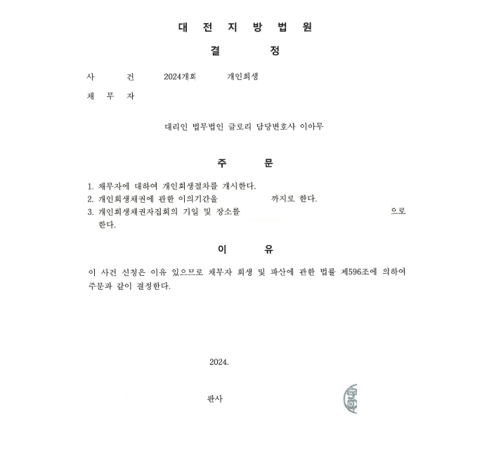 빠르고 꼼꼼한 상담과 끊임없는 소통을 통하여 좋은 조건으로 개시결정까지 법무법인 글로리가 함께합니다.