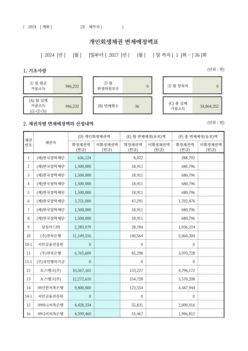 양모씨의 경우, 최근채무가 생활비 및 가족의 생활비에 주로 쓰엿습니다.
