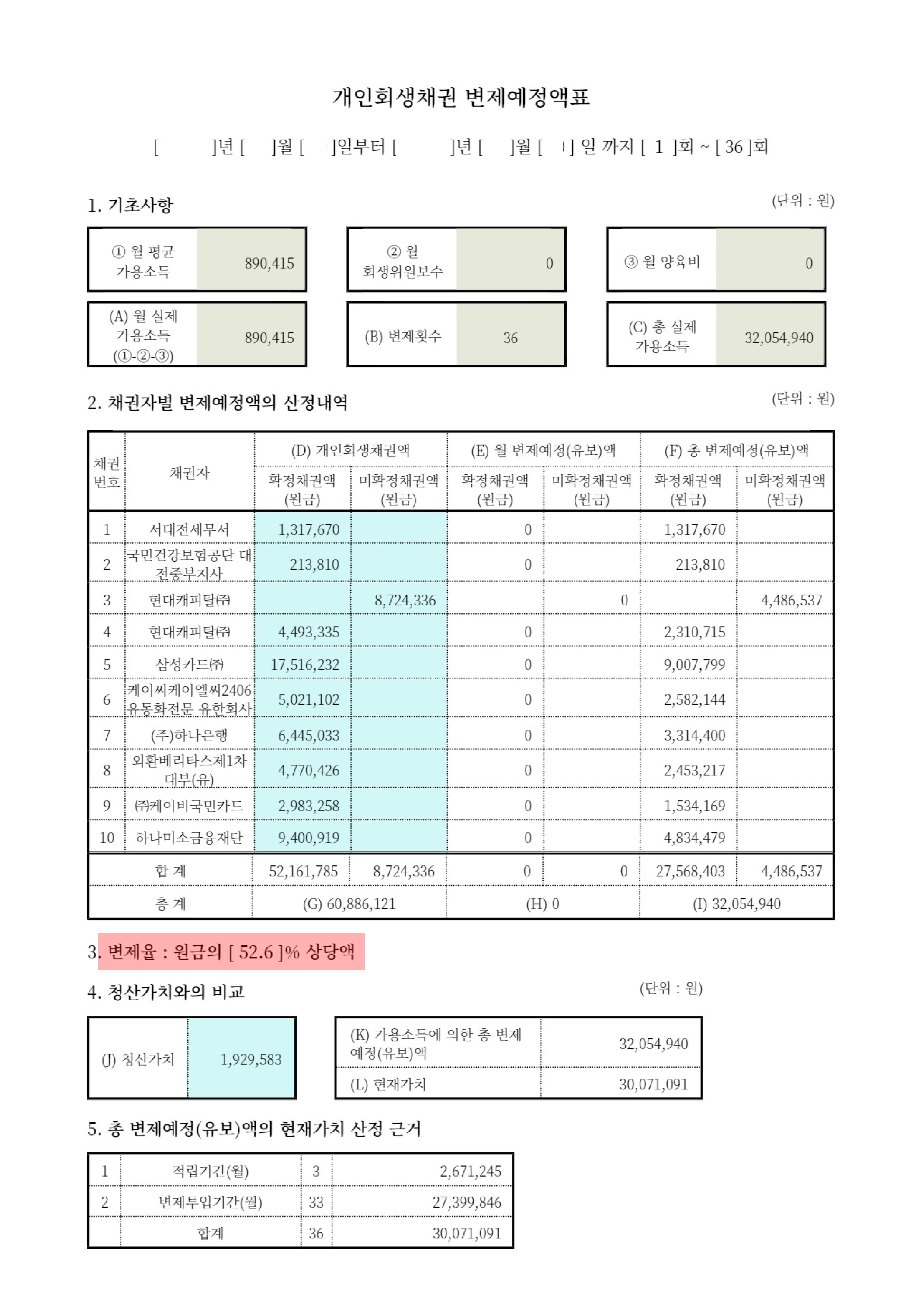 한 번의 간단한 보정을 거쳐 탕감률 48%라는 좋은 조건으로 개시 결정을 받아들일 수 있었습니다.