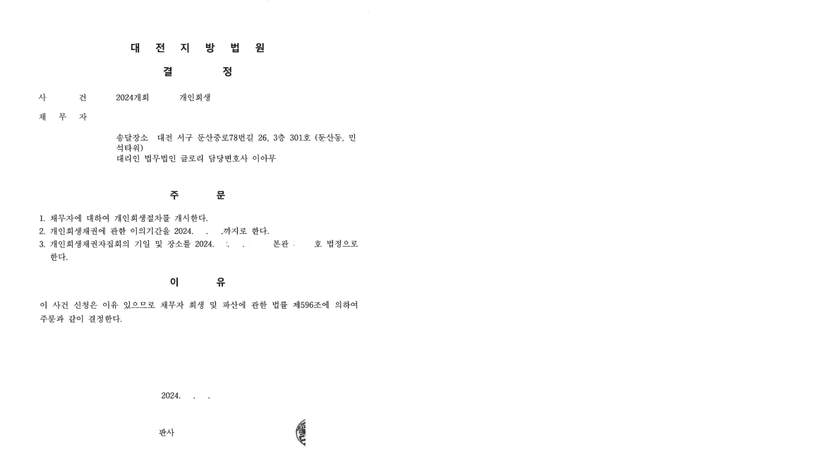 결과적으로 3개월 만에 보정없이 빠르게 의뢰인도 만족하는 개시결정을 받을수 있었습니다.