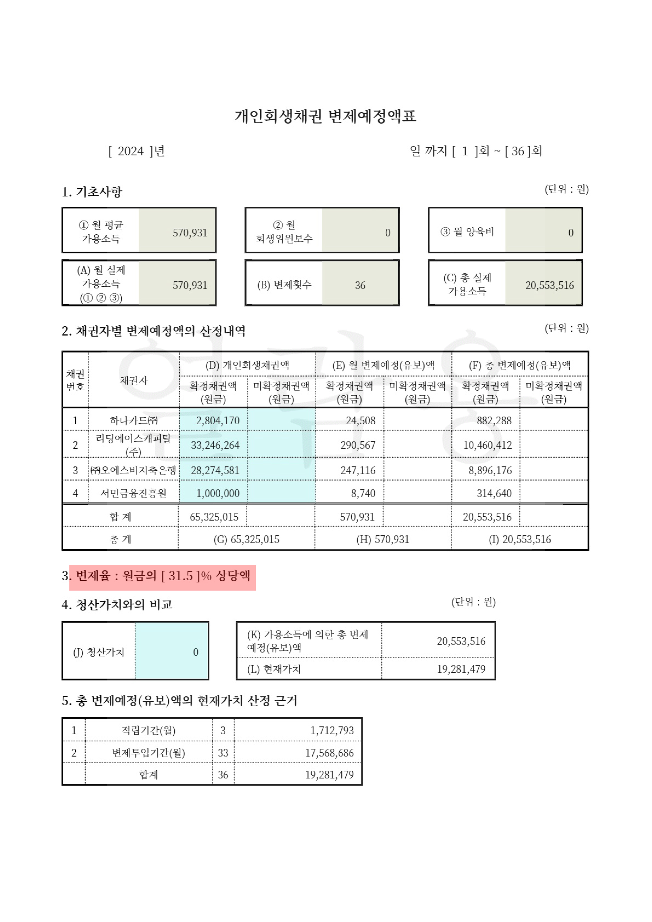 고객님의 경우 소득이 200만 원가량으로 적은 편에 속하셨기 때문에 월 변제금을 최소화하기 위해 노력하였습니다.